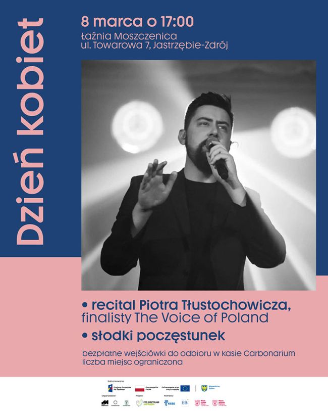 Dzień Kobiet w Łaźni Moszczenica będzie muzyczny i kameralny. W niedzielę 8 marca o godz. 17:00 odbędzie się recital Piotra Tłustochowicza – wokalisty znanego przede wszystkim jako finalista programu „The Voice of Poland”. Artysta o ciekawej barwie głosu wykonuje repertuar oscylujący wokół muzyki rozrywkowej i nastrojowych interpretacji znanych utworów, które prezentuje w kameralnych aranżacjach scenicznych.