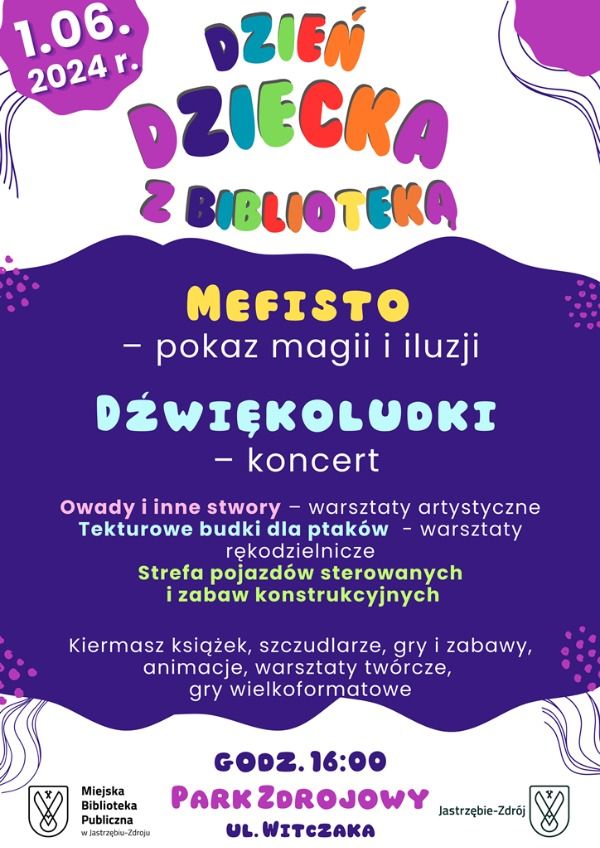 W strefie pojazdów sterowanych zaproponujemy zabawy zdalnie sterowanymi pojazdami wyścigowymi Desert Truck po specjalnie przygotowanym torze. Dzieci i dorosłych zaangażujemy w twórczych grach i zabawach oraz strefie zabaw klockami konstrukcyjnymi. Podczas imprezy prowadzony będzie kiermasz książki a znawcy bajek będą mieli możliwość wzięcia udziału w Bajkowej loteryjce. O nasze dobre humory zadbają szczudlarze i animatorzy wyczarowujący cuda na buziach i włosach milusińskich. Dzień Dziecka jest świętem dzieci, dlatego powinniśmy dać im to, czego na co dzień najbardziej nam brakuje, czyli czas. Spędźmy ten dzień razem na Dniu Dziecka z Biblioteką!