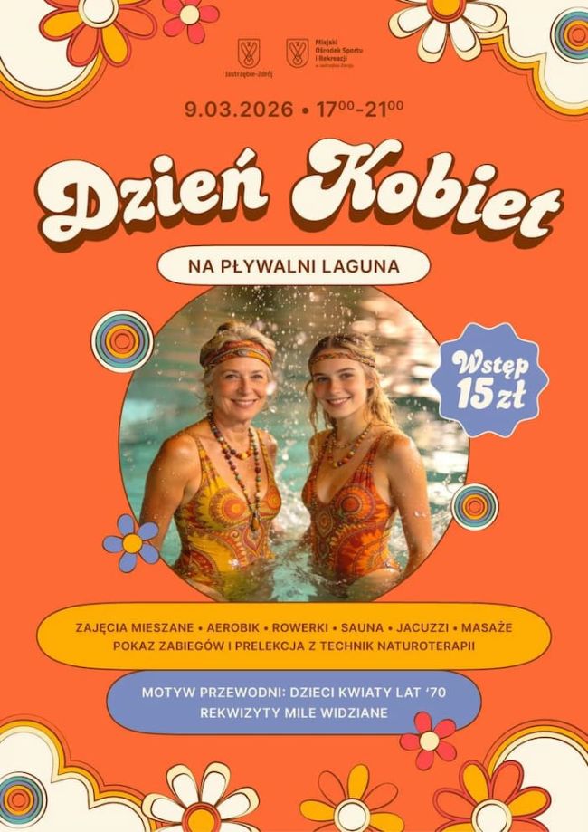 Miejski Ośrodek Sportu i Rekreacji zaprasza na wyjątkowe, sportowe obchody Dnia Kobiet w klimacie dzieci-kwiatów lat 70. Kolorowe stroje, kwiatowe akcenty i pozytywna energia – mile widziane!