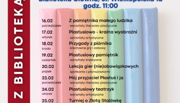Miejska Biblioteka Publiczna w Jastrzębiu-Zdroju zaprasza dzieci w wieku szkolnym na ferie inspirowane „Plastusiowym pamiętnikiem” Marii Kownackiej. W bibliotece głównej oraz filiach odbywać się będą warsztaty literacko-plastyczne, zajęcia kreatywne, gry i zabawy oraz spotkania teatralne.