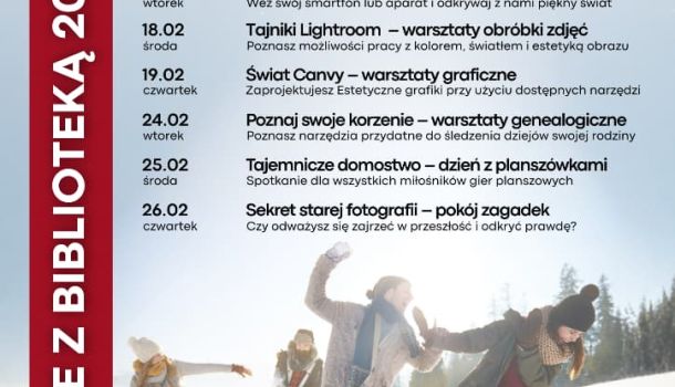 Link do harmonogramu ferii w Strefie Młodych w Miejskiej Bibliotece Publicznej: Twórcze ferie w Strefie Młodych - warsztaty, gry i zagadki czekają!
